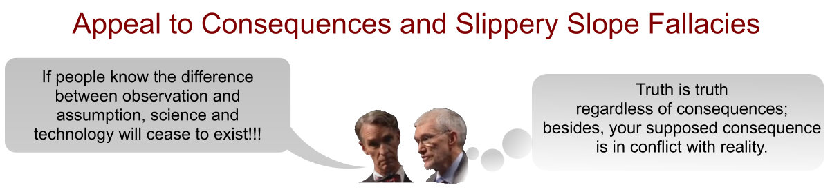 Bill committed an appeal to consequences fallacy. He didn’t say the exact words of the meme, but that was the implication. Appeal to consequence is a fallacy because consequences can’t change reality. He also committed an appeal to fear fallacy. Fear can’t change reality either. Making this line of reasoning even more ridiculous, the consequences Bill proposed weren’t realistic, but even if they had been realistic, consequences have no power to change reality. In other words, it’s not sane to deny reality simply because of a consequence. This consequence could be real or imagined. Therefore, Bill’s imagined and unrealistic consequence isn’t proof against God, doesn’t prove the ungodly origins story, and doesn’t disprove God’s account of origins.