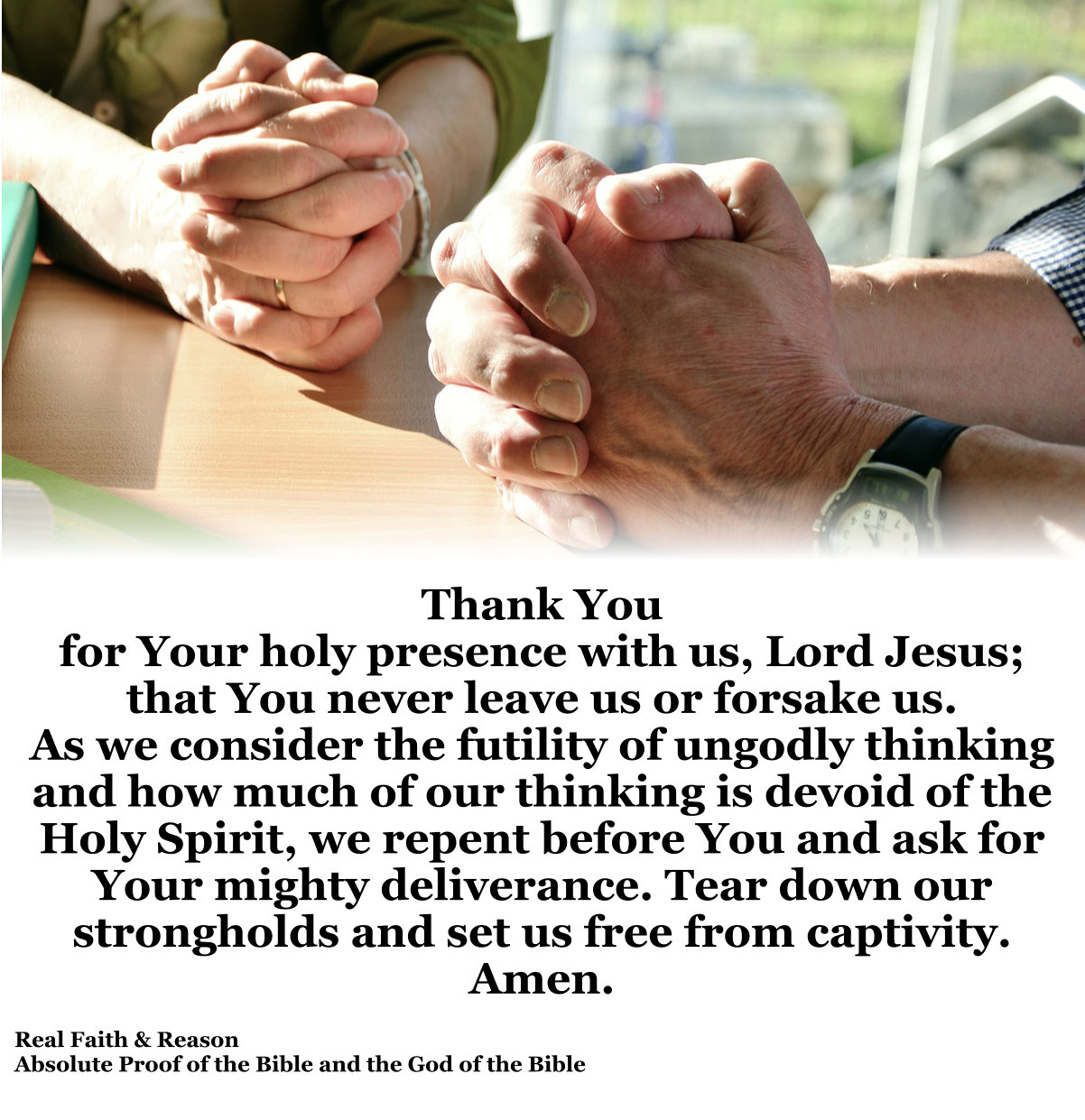 Thank You for Your holy presence with us, Lord Jesus. Thank You that You never leave us or forsake us. As we consider the futility of ungodly thinking and how much of our thinking is devoid of the Holy Spirit, we repent before You and ask for Your mighty deliverance. Tear down our strongholds and set us free from captivity. Amen.