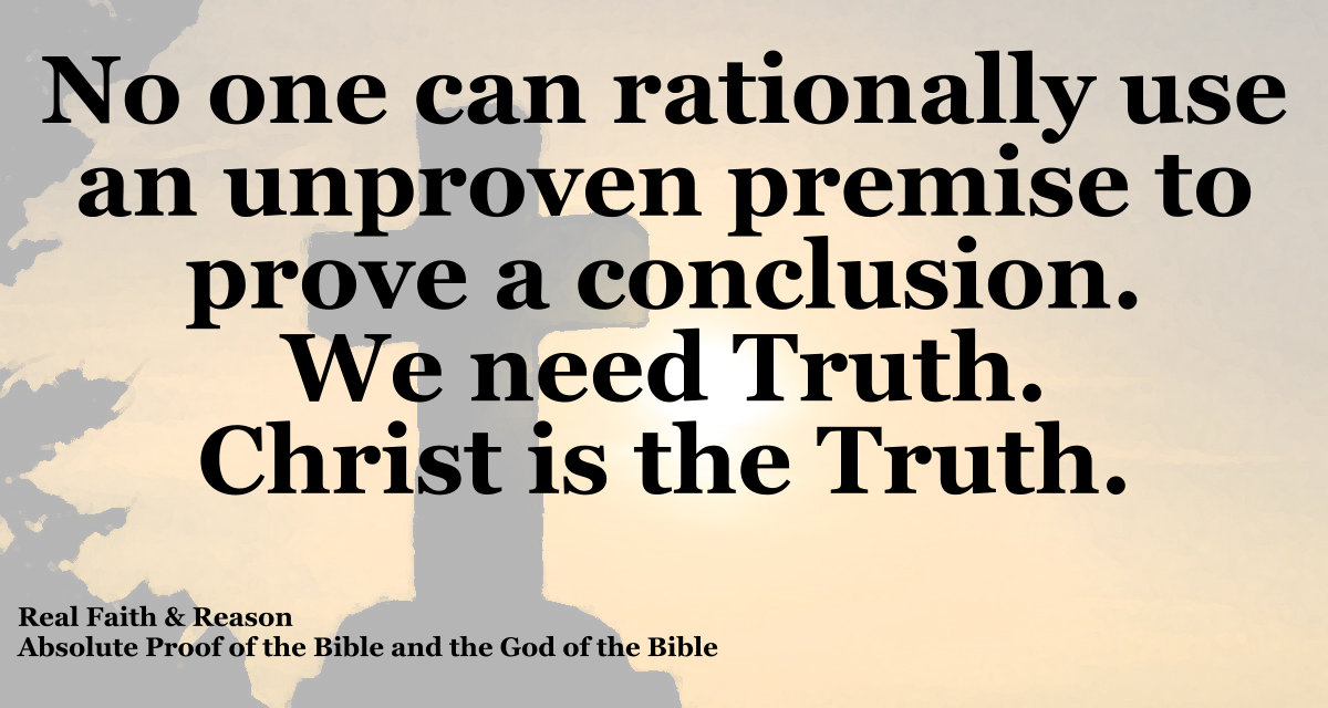 While thinking based on made-up stuff may provide intellectual freedom, it’s not sane, and while escaping from sanity may be exhilarating, sanity is important. As a result, sound reason still requires a true premise. No one can rationally use an unproven premise to prove a conclusion. Otherwise, how could we know whose made-up stuff to use as a premise?