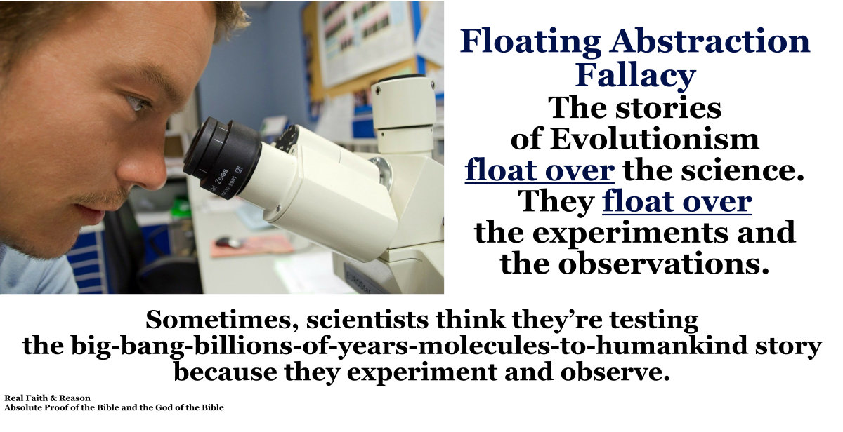 Sometimes, scientists think they’re testing the big-bang-billions-of-years-molecules-to-humankind story because they experiment and observe. But the story floats over the science. It floats over the experiments and the observations. Then they deceptively call the story “science.” It’s a floating abstraction fallacy. We can’t test either the ungodly story or the revealed account in the way we test a shelf design or an automotive design. However, we can test the revealed account spiritually by seeking God’s mind and allowing the Holy Spirit to teach us. On the other hand, we can’t repeatedly physically test and observe either of these.