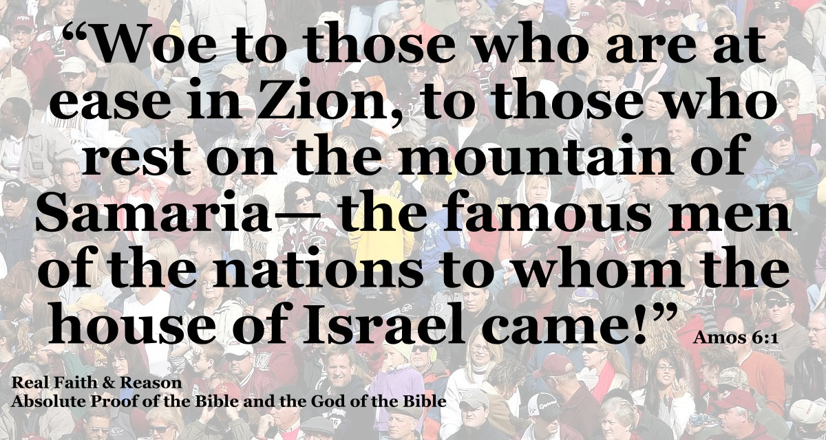 “Woe to those who are at ease in Zion, to those who rest on the mountain of Samaria— the famous men of the nations to whom the house of Israel came!” (Amos 6:1 International Standard Version)