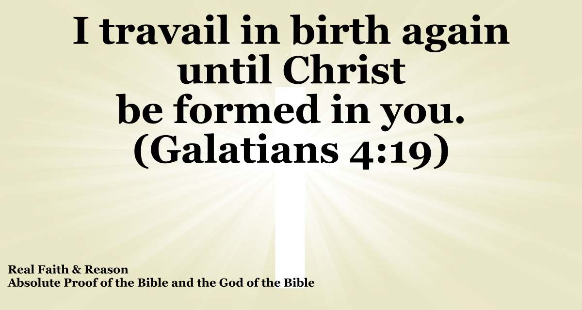 “My children, of whom I travail again until that Christ shall have been formed in you” (Galatians 4:19 Berean Literal Bible)