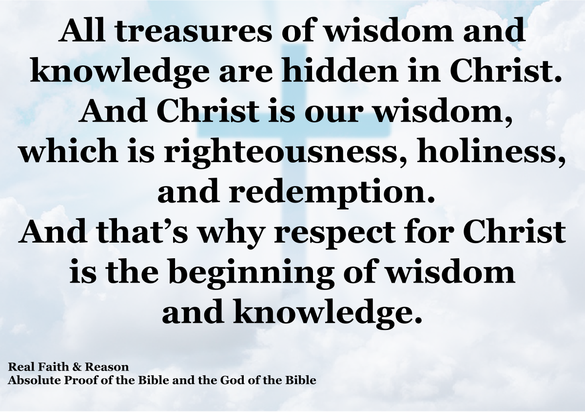 All treasures of wisdom and knowledge are hidden in Christ. And Christ is our wisdom, which is righteousness, holiness, and redemption. And that’s why respect for Christ is the beginning of wisdom and knowledge.