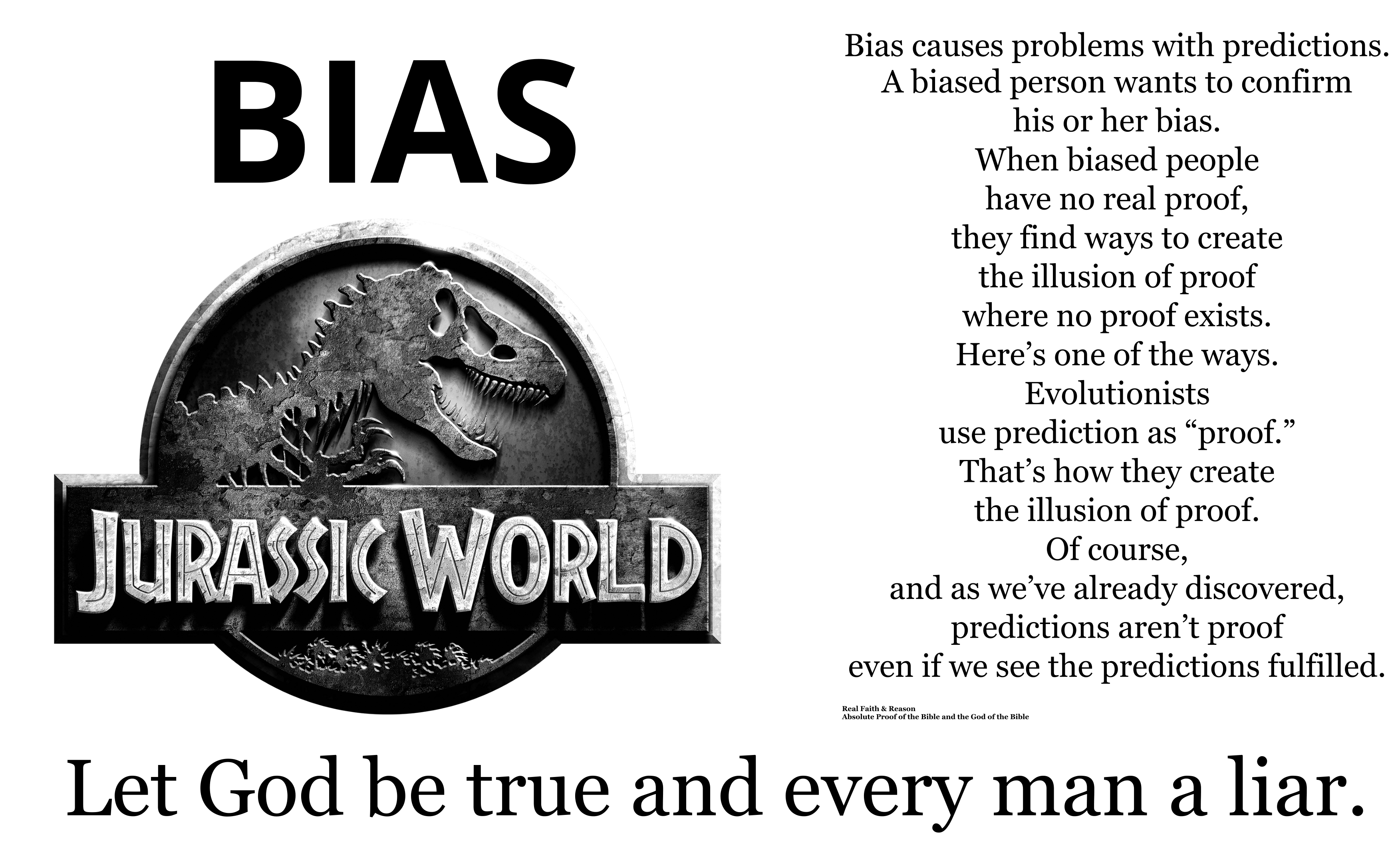 Bias causes problems with predictions. A biased person wants to confirm his or her bias. When biased people have no real proof, they find ways to create the illusion of proof where no proof exists. Here’s one of the ways. Evolutionists use prediction as “proof.” That’s how they create the illusion of proof. Of course, and as we’ve already discovered, predictions aren’t proof even if we see the predictions fulfilled.