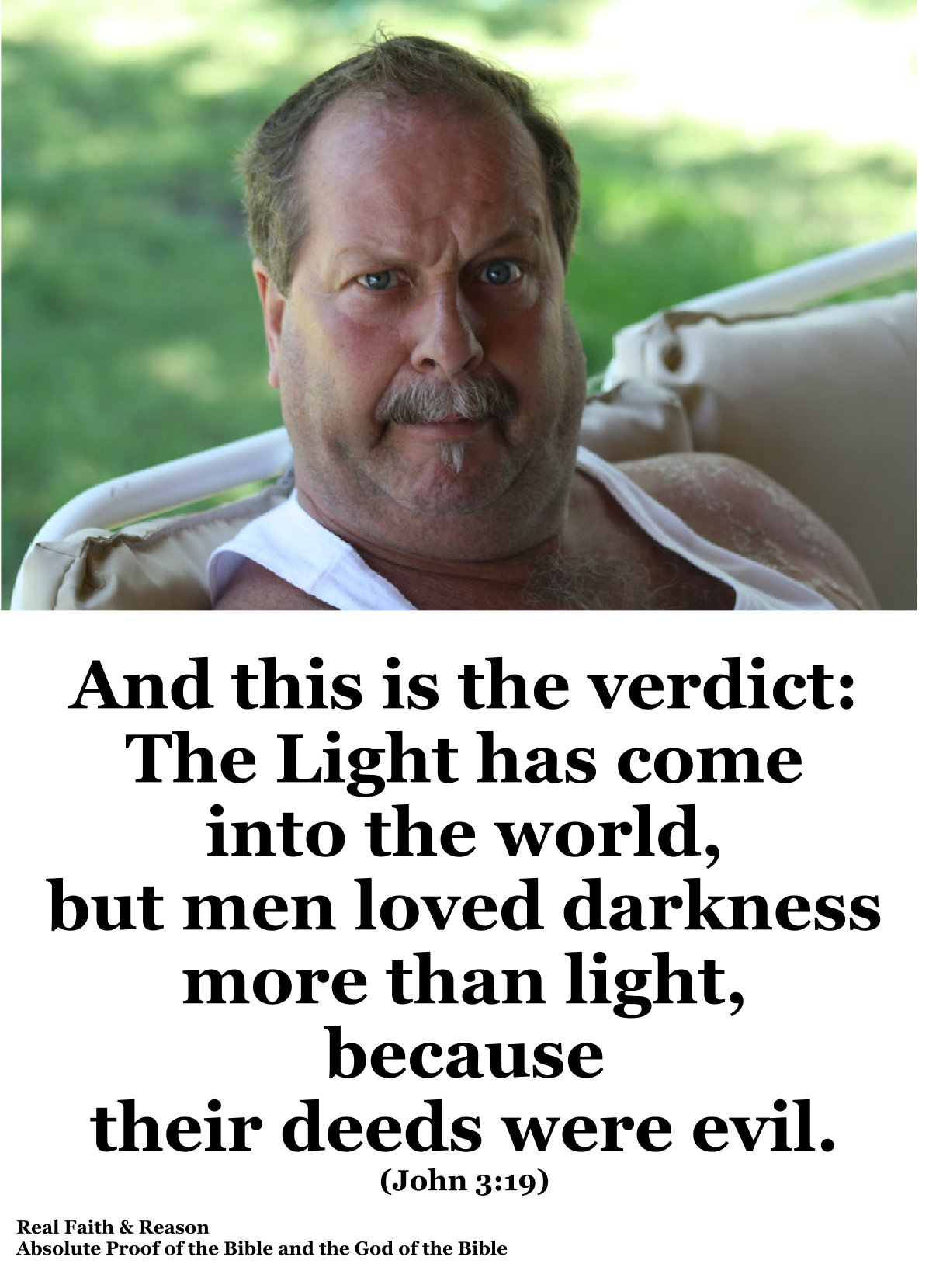 And this is the verdict: The Light has come into the world, but men loved darkness more than light, because their deeds were evil. For everyone practicing evil hates the Light and does not come to the Light, so that his works may not be exposed; But whoever practices the truth comes into the Light, so that it may be clearly seen that what he has done has been accomplished in God. ~ John 3:19-21 Berean Study Bible