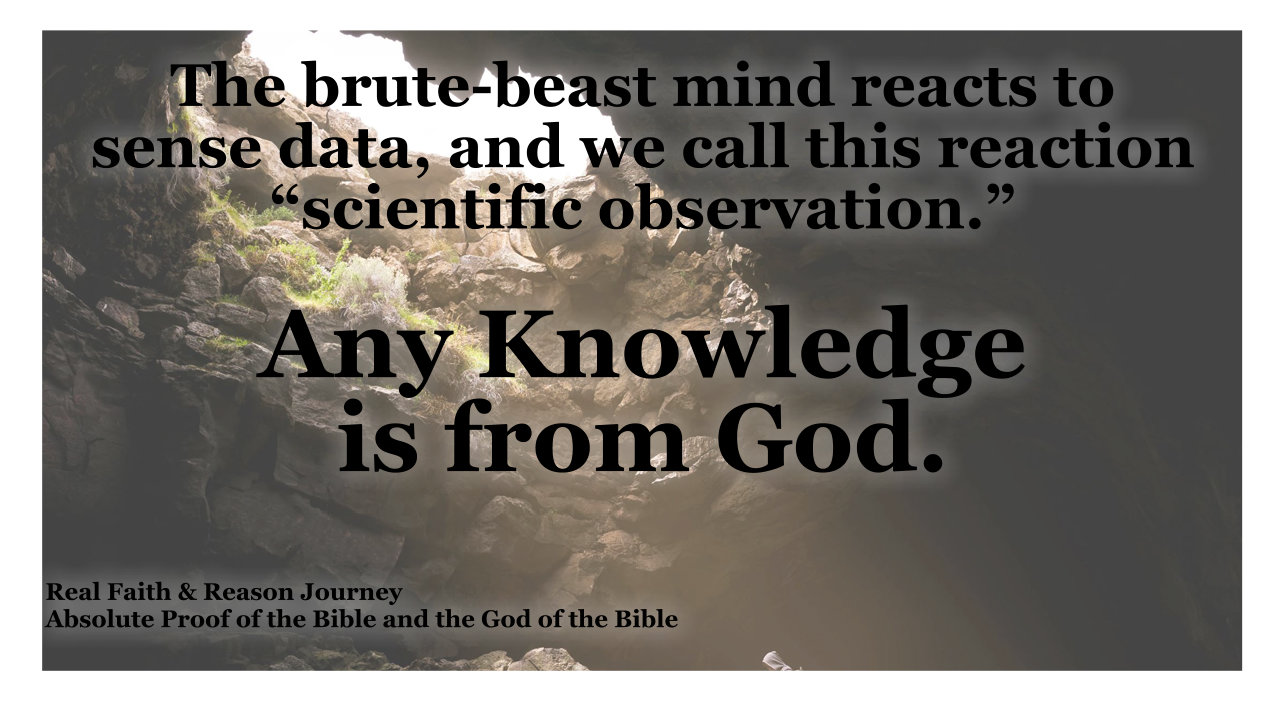 We see the natural brute-beast mind working with divine revelation in science, and God imparts knowledge through the scientific method. The brute-beast mind reacts to sense data, and we call this reaction “scientific observation.” God gave the scientific method to humanity so He could impart knowledge through it. Ungodly thinkers can gain pragmatic familiarity through the scientific method. Pragmatism is a practical way of surviving. Pragmatic familiarity doesn’t lead to knowledge of the truth. It’s practical, but it’s tentative.