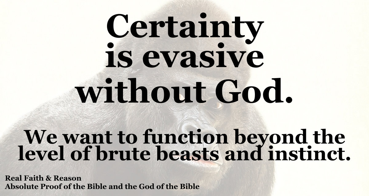 God reveals that our natural senses are somewhat accurate. However, if we don’t acknowledge divine revelation, we have to assume that our natural senses are somewhat accurate. Atheist evolutionists, for instance, have no way to prove that their natural senses are accurate or that they even exist. Natural familiarity isn’t precise and accurate knowledge of truth with absolute certainty. Certainty is evasive without God. The human mind by itself can’t provide a true premise to prove a conclusion about what we sense with our five senses. We want to function beyond the level of brute beasts and instinct.