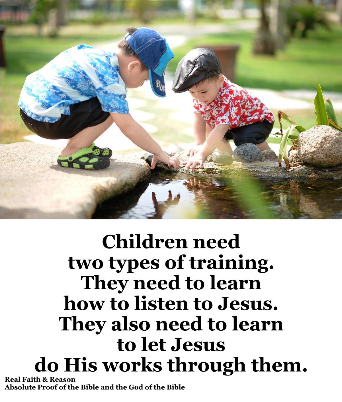 Ephesians 6:4 speaks of two forms of training. One is nouthesia, which is “putting in mind.” What does God want the children to have in their minds? God wants them to acknowledge Him, and He’ll be there to guide if they’re willing to acknowledge Him, that is, hold Him in their knowledge. The second form of training is paideia, which is action. To understand this paideia action, we must remember that works come by grace through faith, so children need to learn how to acknowledge God’s leading and how to respond in submission. They need to learn how to yield to the Holy Spirit, so God does His works through them.