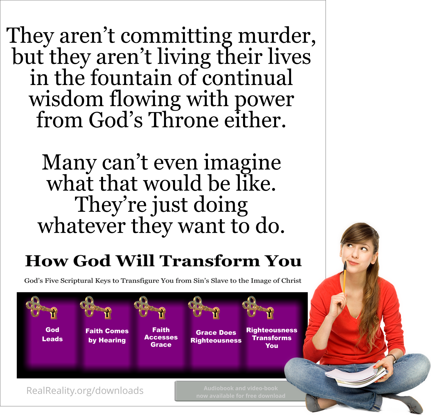 They aren’t committing murder, but they aren’t living their lives in the fountain of continual wisdom flowing with power from God’s Throne either. Many can’t even imagine what that would be like. They’re just doing whatever they want to do.