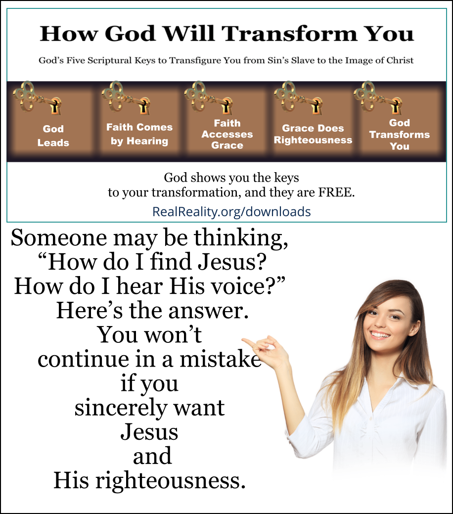 Someone may be thinking, “How do I find Jesus? How do I hear His voice?” Here’s the answer. You won’t continue in a mistake if you sincerely want Jesus and His righteousness.