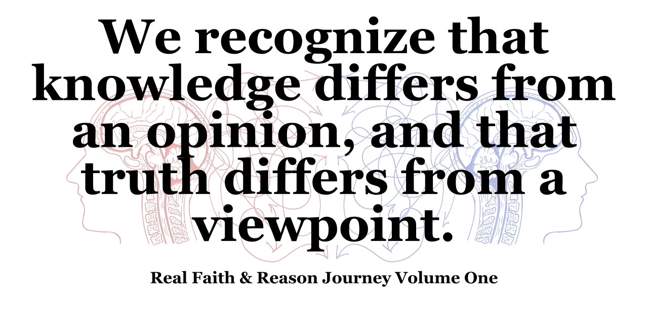 We recognize that knowledge differs from an opinion, and that truth differs from a viewpoint. Opinions are easy. For opinions, we need only make up stuff and believe it. Then, we pretend that the made-up stuff is reasonable so we can convince ourselves that we’re right. For opinions, we still have a reason to believe, but we don’t need to base our reasoning on anything real. Opinions are mere suppositions in our minds or the minds of others since opinions just give the illusion of sanity.