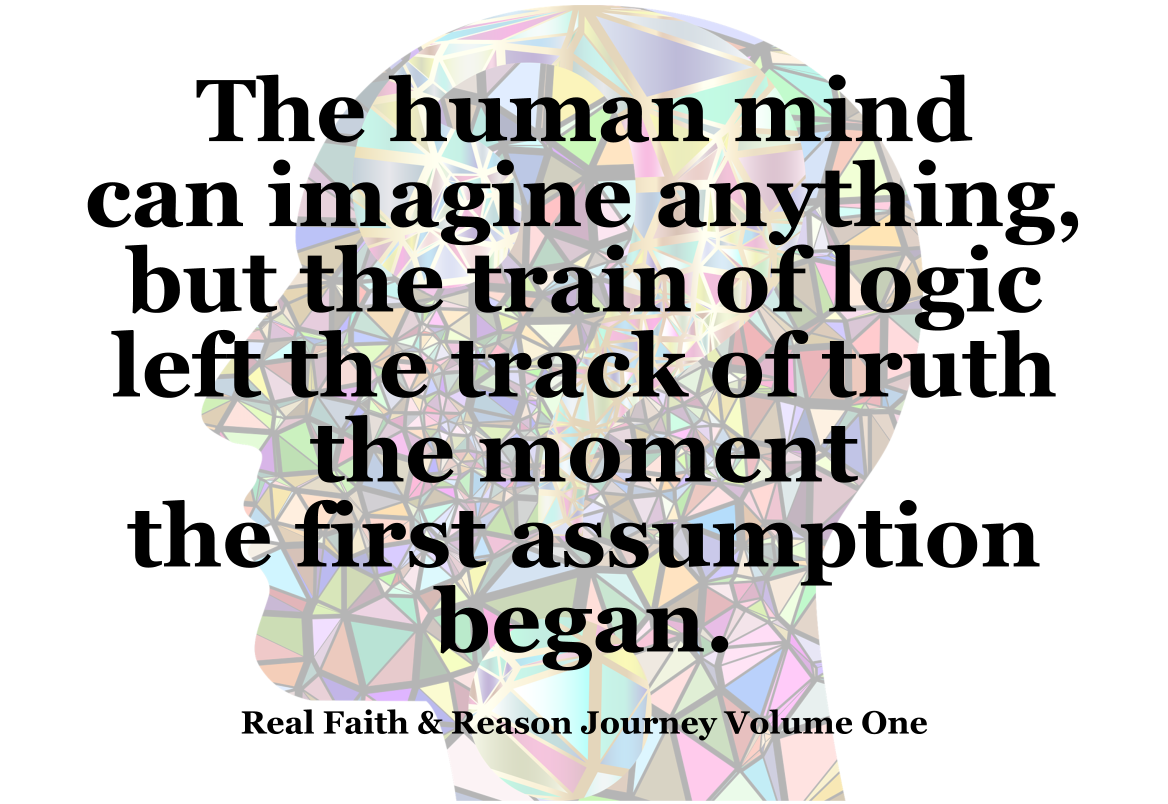 A chain of thought is like a train. We must rationally link each car. If one car leaves the track of truth, the entire train derails, and irrationality can follow unhindered. Regrettably, the results aren’t usually good, although God sometimes shows mercy during the train wreck. The human mind can imagine anything, but the train of logic left the track of truth the moment the first assumption began. If the train of logic stays on the track of truth, the reasoning is sound.