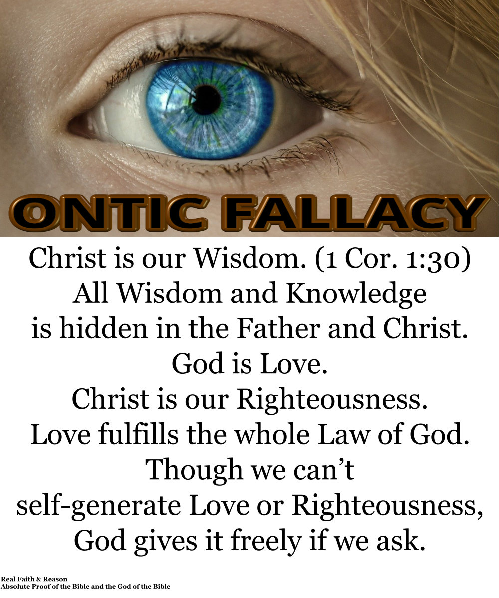 Ontic Fallacy : Thinking we can get knowledge through raw perceptions. Ignoring the filter of the human sensory and worldview limitations. Ignoring how this filter affects perception.