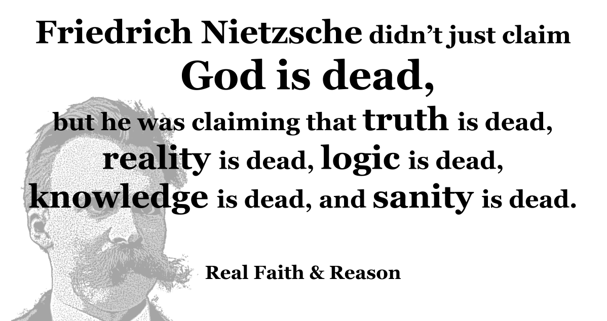 Interestingly, Friedrich Nietzsche so resisted the truth that he refused to acknowledge God and famously declared “God is dead.” However, Nietzsche didn’t include himself among the people who don’t want to hear the truth even though he had no rational method to say that anything was true. He had no basis for declaring, “God is dead” or anything else for that matter. He wasn’t only claiming that God is dead, but he was claiming that truth is dead, reality is dead, logic is dead, knowledge is dead, and sanity is dead. While that may seem like an overstatement, we’re just starting to explore reason, and we’ll explore whether we’ve overstated this problem.