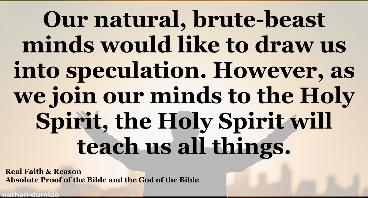 Our natural, brute-beast minds would like to draw us into speculation. However, as we join our minds to the Holy Spirit, the Holy Spirit will teach us all things.