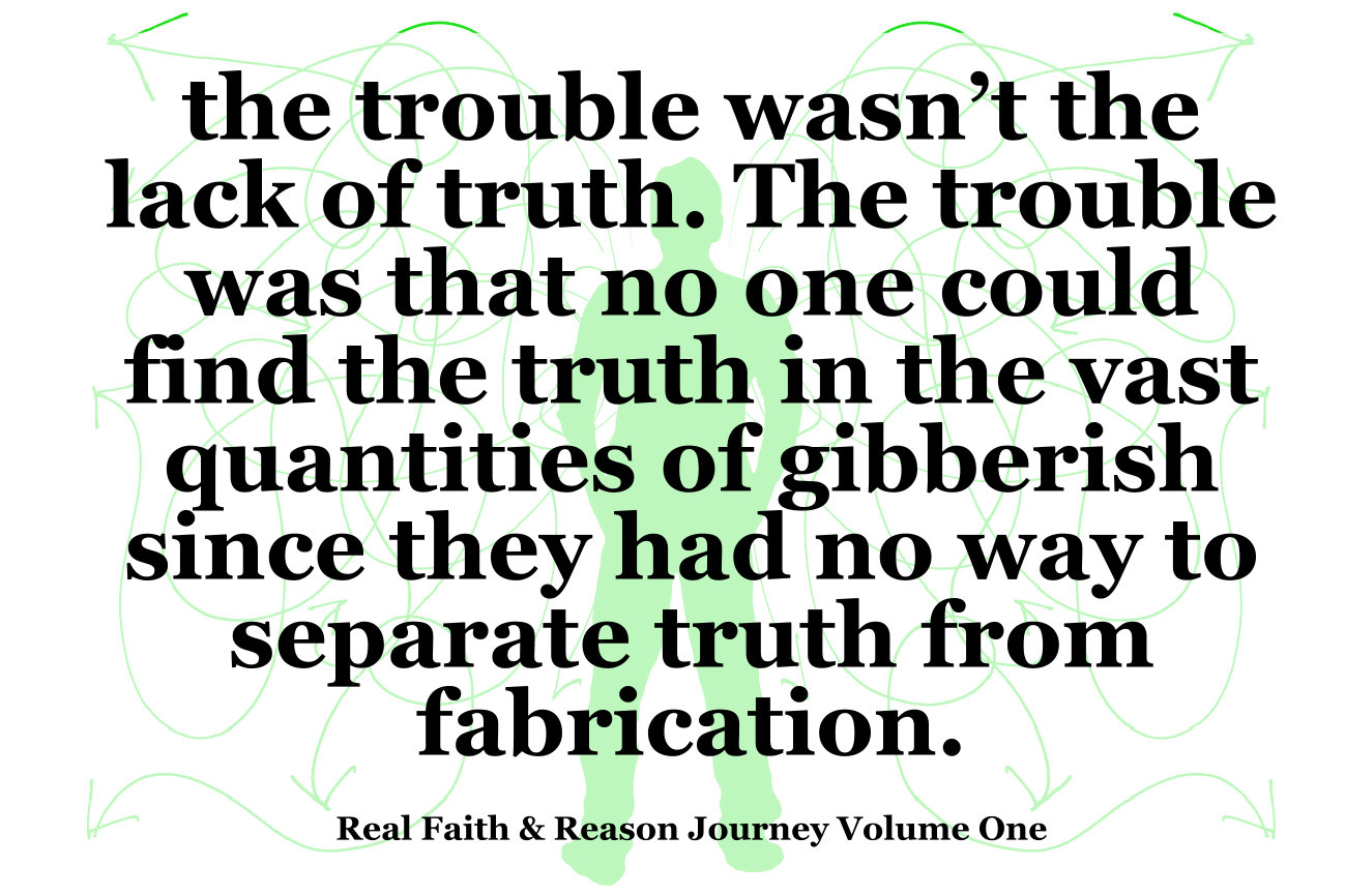 Jorge Luis Borges wrote a short story titled “The Library of Babel” in which people had access to every book ever written. While most of the books were pure made-up stuff with no truth, many other books contained truth. So the trouble wasn’t the lack of truth. The trouble was that no one could find the truth in the vast quantities of gibberish since they had no way to separate truth from fabrication. With a Babylon of voices that all claim to be right, we live in a world of babble as we try to find the truth in a sea of lies and deceptions.