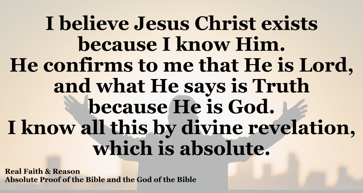 Christian: I know Him. He confirms to me that He is Lord, and what He says is Truth because He is God. I know all this by divine revelation, which is absolute.