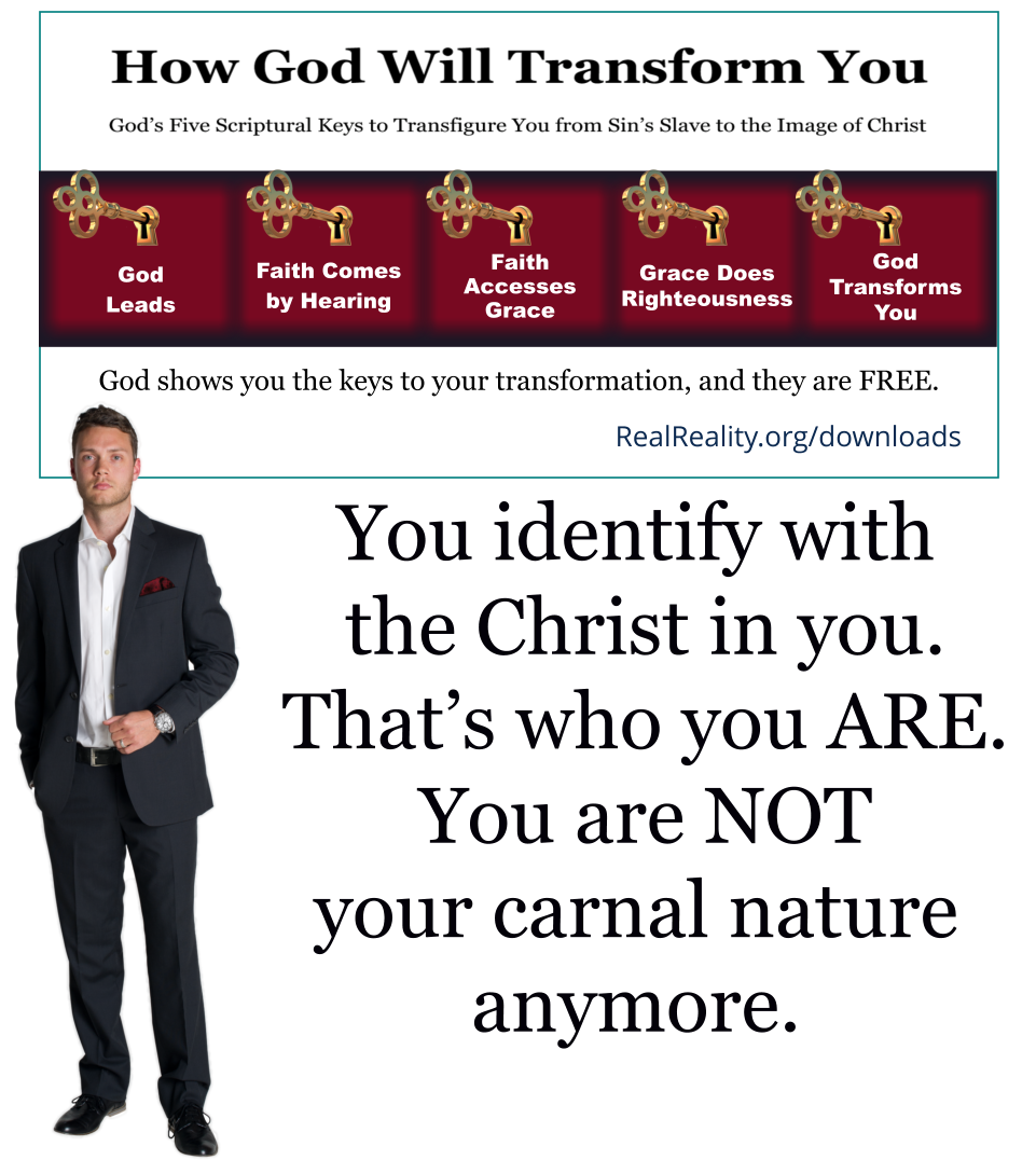 You identify with the Christ in you. That’s who you ARE. You are NOT your carnal nature anymore.